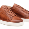 Chaussures détente – Sneaker Cousu Latéral. Semelle Gomme incluant 20% de caoutchouc recyclé. Dessus : Cuir de vachette italien patiné à la main. Doublure: Cuir Vachette. Première : Cuir.